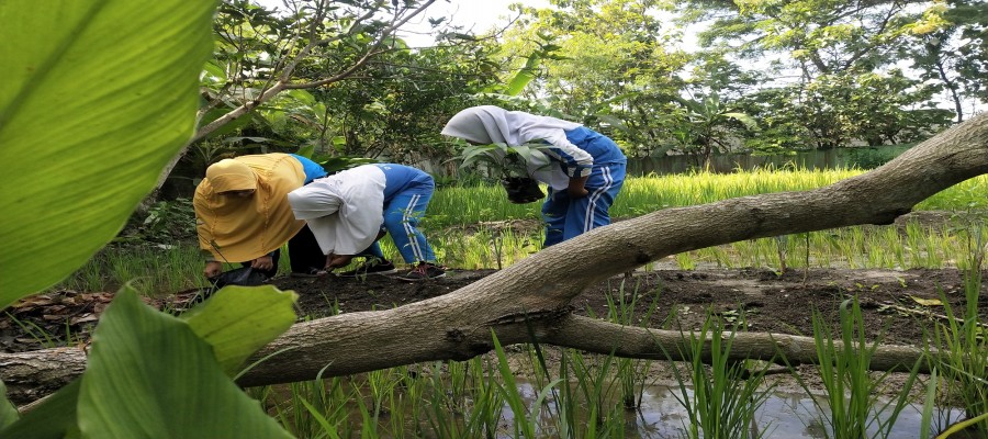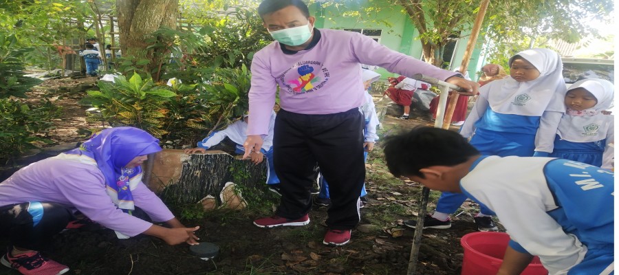 Untuk menambah daerah resapan dan pencegahan banjir, MIN 3 Demak menambah titik BIOPORI